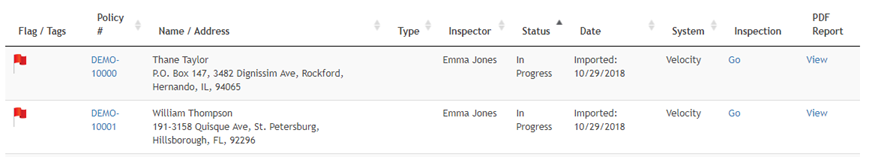 Flag – As there is a time limit to complete inspections the flag gives you an easy to view identifier to the inspections that need most attention. Check out the flags article for more details.