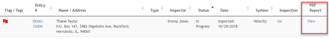 To open a report of the inspection, go to the home page to view your inspection list. Click on the ‘View’ PDF Report link of the inspection in the Inspections table: