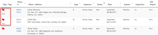 Select the tag or tags you want to assign to the inspections by checking the tag box then press the Add Tags button. You will be returned to the Inspections page and your selected inspections are now tagged: