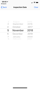 Select the date and tap the Policy Number link or Back link in the top left corner. You will be returned to the Inspection page and the date value will be inserted in the Inspector Value field.